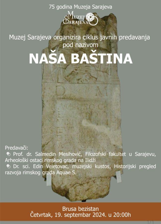 O historiji rimskog grada na Ilidži, rimskim ostacima sa prostora današnjeg Sarajeva, ali i brojnim drugim široj javnosti nepoznatim detaljima bit će riječ na četvrtom javnom predavanju “Naša baština.”