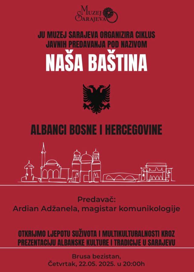 U okviru ciklusa “Naša baština” zadovoljstvo nam je najaviti predavanje magistra komunikologije Ardiana Adžanele na temu “Albanci Bosne i Hercegovine.”