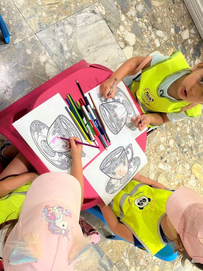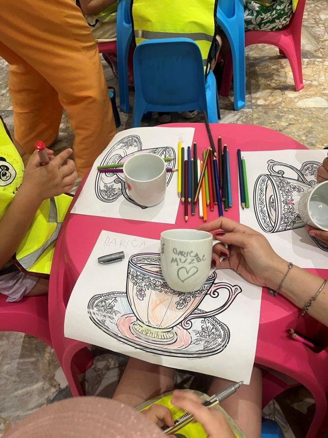 Inspirisani viđenim, mališani su potom bojali papirne šoljice i oslikavali male keramičke posude, pretvarajući učenje o prošlosti u kreativno i zabavno iskustvo.