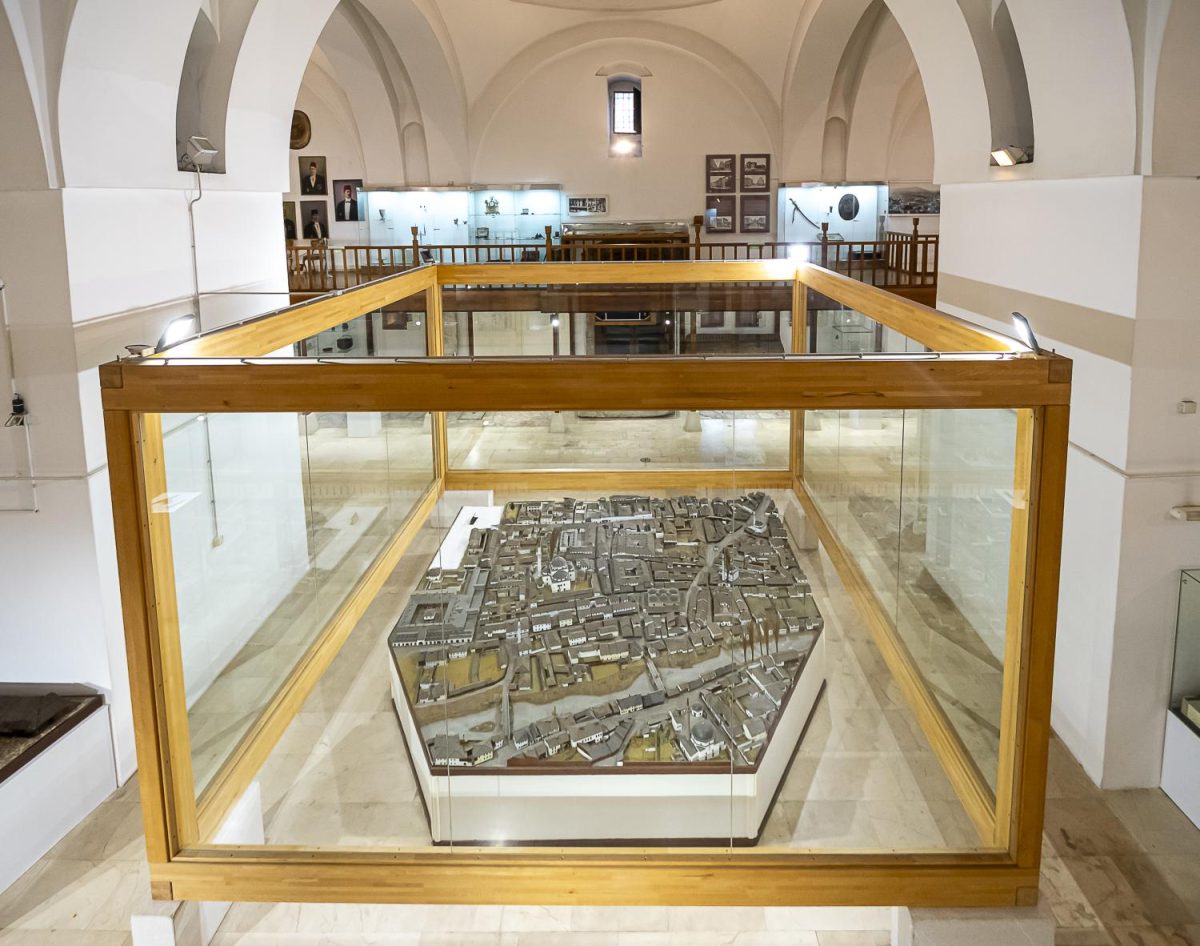 Ovaj monumentalni objekat izgradio je 1551. Rustem-paša Veliki vezir Sulejmana Veličanstvenog. Objekat je služio za prodaju svile koju je sam osnivač proizvodio u Bursi. Brusa bezistan ima pravokutnu osnovu (29,5 x 20,5 m), građen je od kamena i pokriven sa šest kupola i dvije manje kupolice. Masivni stupovi unutar bezistana imaju konstruktivnu ulogu, a iznad kojih su kupolice koje su služile su za čuvanje arhivskih dokumenata i sidžila. Tokom opsade Sarajeva 1992-95. Brusa bezistan je oštećen da bi poslije obimnih sanacionih radova tu danas smještana Stalna postavka Muzeja Sarajeva, što ovom objektu visokih vrijednosti kulturnog naslijeđa čini dalji opstanak mogućim. U koncepcijskom pogledu ova Stalna postavka zasnovana je na hronološkom principu i izlaganje arheološkog materijala podjeljeno je na tri osnovna dijela: prahistoriju, antiku (tu je izložen nastariji motiv ljiljana u BiH} i srednji vijek. Na galeriji bezistana su izloženi eksponati iz osmanskog perioda ( izložena najskuplja oprema osmanskog ratnika) i vremena austrougarske uprave u Sarajevu.