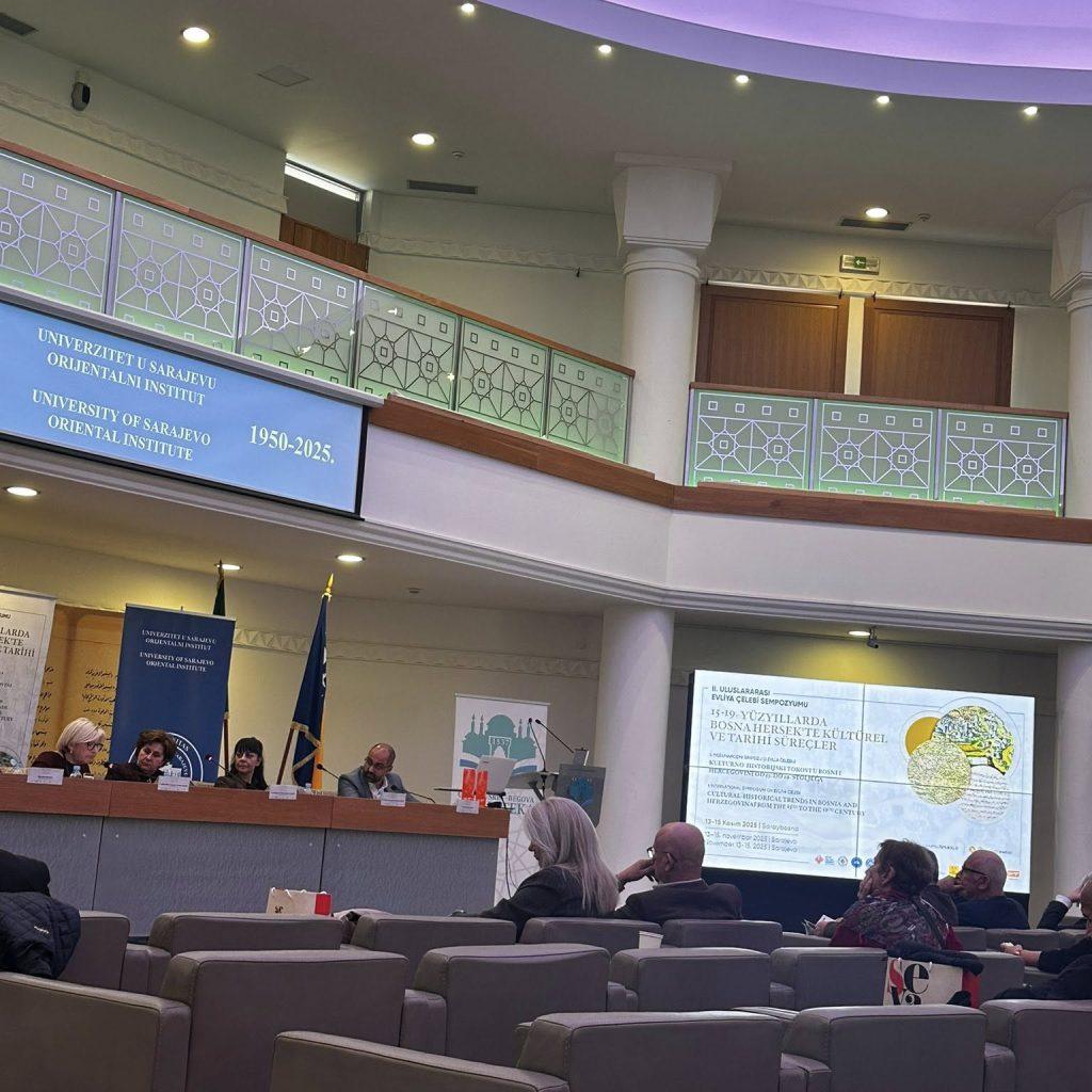 Today marks the opening of the 2nd International Symposium on Evliya Çelebi, organized by the Oriental Institute of the University of Sarajevo. The symposium, titled “Cultural and Historical Currents in Bosnia and Herzegovina from the 15th to the 19th Century,” is being held on November 13 and 14 at the Gazi Husrev-bey Library and the Faculty of Economics in Sarajevo. Museum advisors Moamer Šehović and Adnan Muftarević, together with the Museum Director Indira Kučuk-Sorguč, attended all of today’s sessions, supporting the scholarly contributions of participants from Bosnia and Herzegovina, Turkey, Bulgaria, Serbia, Croatia, North Macedonia, and other countries who presented the results of their research.