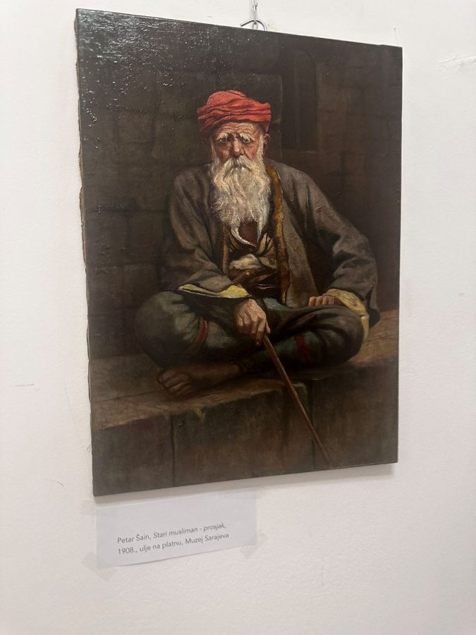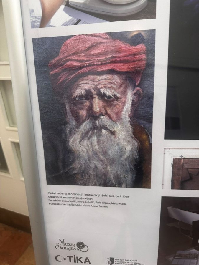 The exhibition features numerous valuable restored items, among which the painting “Old Muslim – Beggar” by Petar Šain from the collection of the Sarajevo Museum stands out in particular.